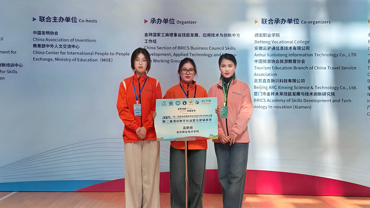 近期,2025年“一帶一路”暨金磚國家技能發(fā)展與技術創(chuàng)新大賽“酒店數(shù)字化運營與營銷”“幼兒照護”賽項全國總決賽相繼落幕,安慶職業(yè)技術學院學子憑借扎實的專業(yè)功底、出色的實踐能力與創(chuàng)新思維,取得佳績。