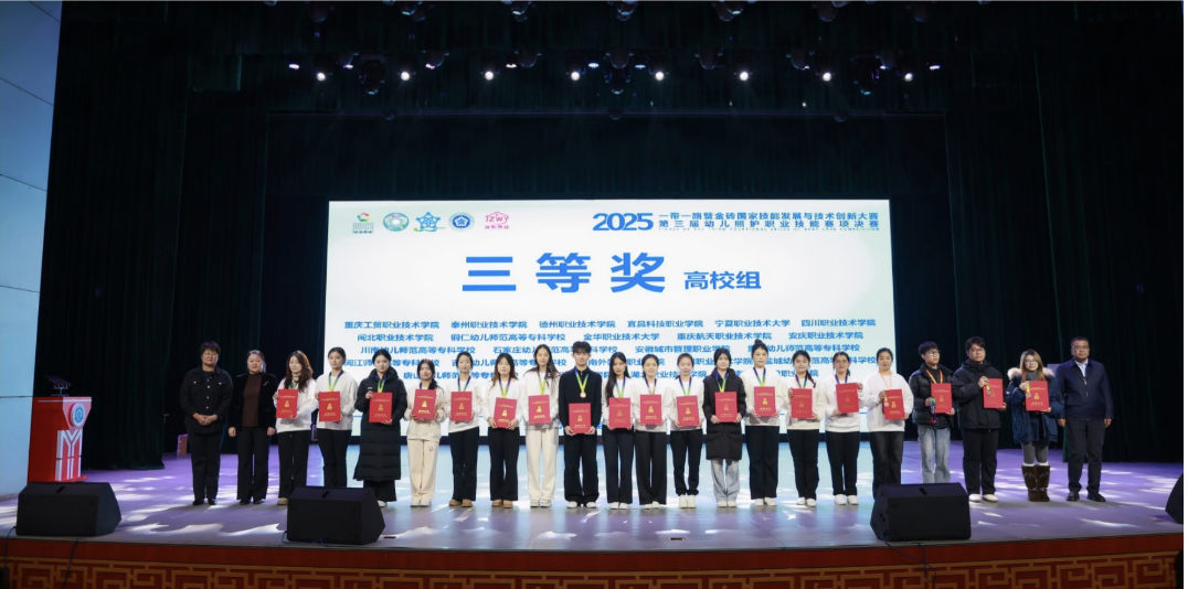 12月5日至9日,幼兒照護賽項全國總決賽在內(nèi)蒙古民族幼兒師范高等專科學校成功舉辦。安慶職院嬰幼兒托育與服務管理專業(yè)余璇、周晴晴、湯孜妍、程燕四名同學組成的代表隊,在與來自8個國家的174支隊伍、610名選手的同場競技中,榮獲全國總決賽三等獎。